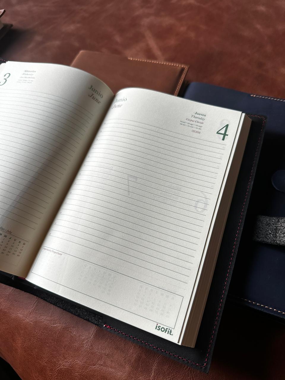 Tiene un formato muy cómodo de1 día por hoja, cubierta de cuero natural (como siempre en RENA) y todo el estilo para destacar donde sea que la uses.