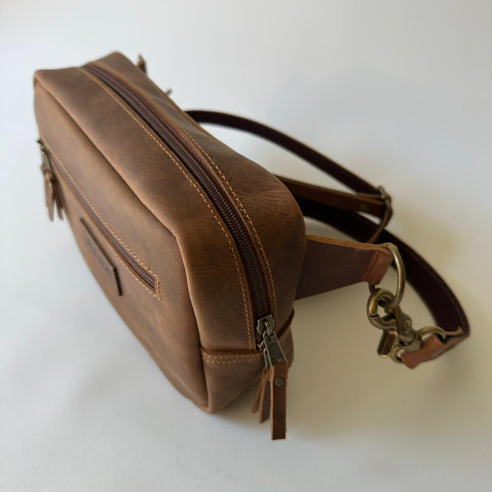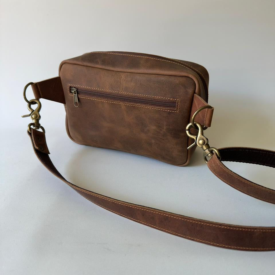 Mejora tu estilo y comodidad con este Banano de cuero natural con excelentes terminaciones.