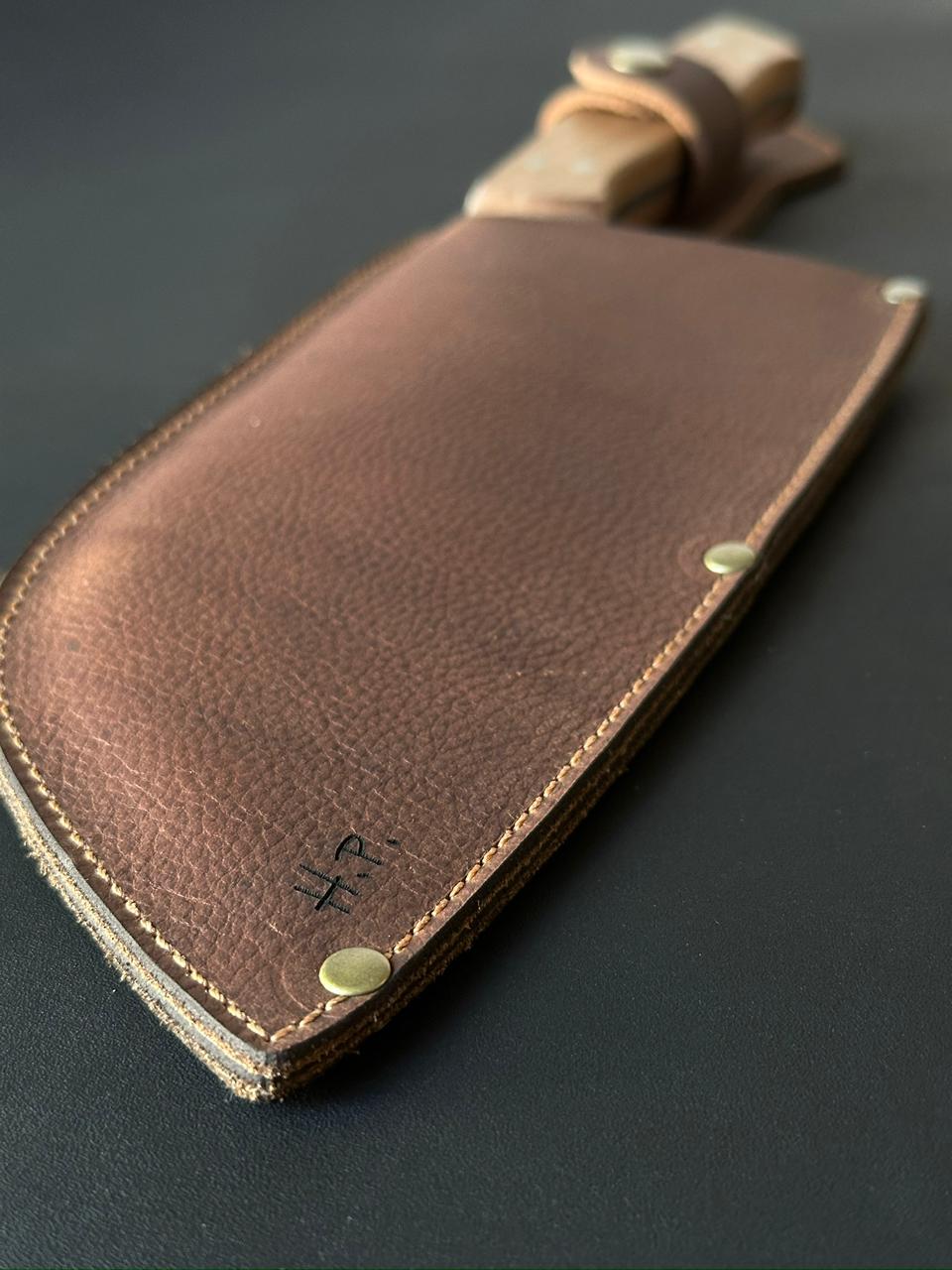 De gran consistencia y filo, es un complemento perfecto al momento de realizar cortes rápidos y pesados. Además, incluye una funda de cuero fabricada por RENA, hecha a medida.